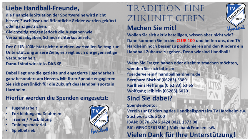Dann kommen Sie in den CLUB 100 und helfen uns den TV Hardheim